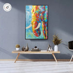 Elevate your interiors with this handcrafted 3D Embossed elephant painting, sized at 60×90 cm (2ft × 3ft). Embossed textures and layered brushstrokes create a tactile surface, bringing the majestic elephant to life in vibrant strokes of red, blue, yellow, and green. Symbolizing strength, wisdom, and prosperity, the elephant adds both visual impact and cultural depth to your walls.