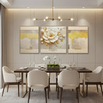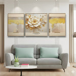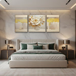 Elevate your interiors with the Bloom Leather Painting Set, an exquisite fusion of artistry and fine materials. Crafted with embossed leather, the central panel showcases a luxurious 3D floral bloom, flanked by two abstract panels with rich golden textures. Together, the set creates a harmonious balance of organic beauty and modern abstraction.