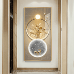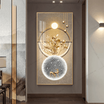 Featuring a size of 24x48 inches, our crystal glass painting is a statement piece that effortlessly transforms any room into a gallery-worthy space. The golden frame adds a touch of luxury, perfectly complementing the intricate crystal and glass work.