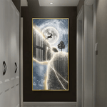Featuring a size of 24x48 inches, our crystal glass painting is a statement piece that effortlessly transforms any room into a gallery-worthy space. The golden frame adds a touch of luxury, perfectly complementing the intricate crystal and glass work.