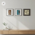 This set explores the language of abstraction through organic curves, bold geometry, and fluid lines. The earthy brown, ocean teal, and soft ivory-beige color palettes harmonize beautifully, offering both contrast and cohesion in contemporary décor.