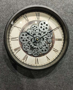Featuring visible rotating gears, this clock brings life to your wall while maintaining accurate time. The classic Roman numeral dial paired with an antique-finish frame creates a perfect balance of vintage and industrial aesthetics.