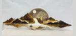 Transform your wall into a statement of peace and grandeur with the Celestial Harmony Acrylic Crystal LED Painting (48×24 in / 4×2 ft). This exquisite artwork depicts towering mountains, a radiant golden tree within a glowing moon, and serene river waters with a small sailing boat — symbolizing balance, prosperity, and tranquility.