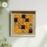 The second uses golden and brown folded pyramids arranged in a grid, radiating warmth and modern vibrance.