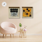 Both are enclosed in wooden frames with protective glass, blending durability with contemporary elegance. Together, they form a bold duo perfect for accent walls in living rooms, creative studios, or modern office spaces.