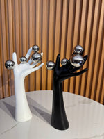 Bring contemporary elegance into your space with this beautifully crafted Modern Hand Sculpture Set (Size: 15×30 cm). Designed with smooth matte finishes and chrome metallic spheres, these statement art pieces symbolize creativity, luxury, and balance.