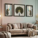 Add a touch of royal beauty and luxury to your home with this stunning 3-piece Peacock Shadow Box Frame Set. Featuring 3D Peacock Art, premium detailing, and elegant gold accents — this set instantly enhances any living room, hallway, bedroom, or office space.