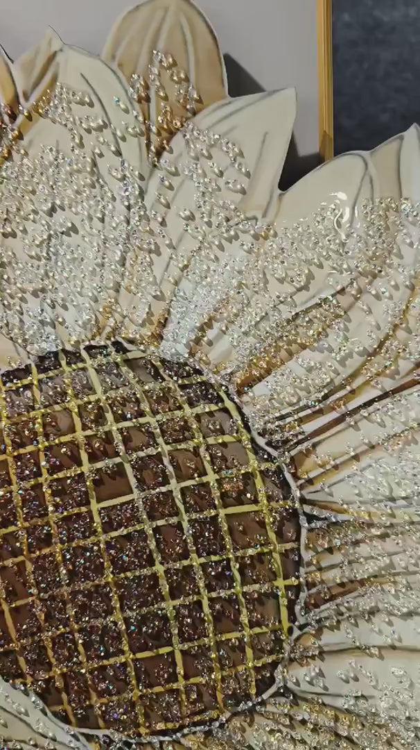 Brighten your interiors with this Sunflower Glow Acrylic Crystal Painting (48×24 in / 4×2 ft). The embossed sunflower motifs, crafted with acrylic crystal detailing, capture the beauty of nature in a shimmering, three-dimensional form.
